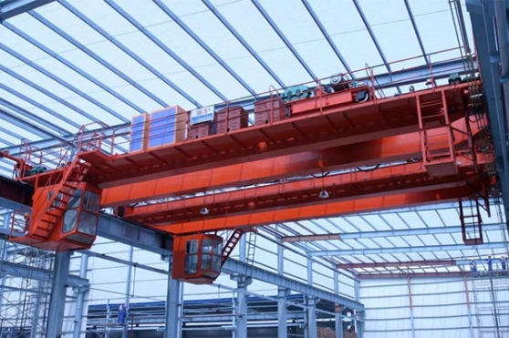 The crane is composed with Girder frame, Crane travel device, and the trolley with lifting and moving device. There are Pave the rail for the trolley move on the main girder. Assemble the moving table on the outside of the two main girder, one side is prepare for the assemble and maintenance the crane move device, another side is prepare for the assemble of the trolley conductor device. There are full field of view Cabin suspend under the main girder, there are joint control desk or single control box packed within the Cabin, assemble the sidelong ladder between the Cabin and moving table, The main girder joint with the two side end carriage which with the joint point in the middle.